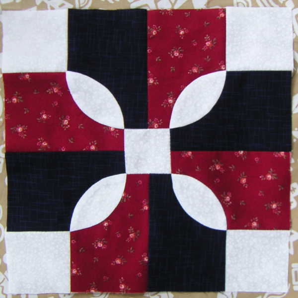曲線ピースの縫い合わせは始めてで、あーでもない、こーでもないと一人試行錯誤して縫った。(サークルのレッスンではまだまだ先だから)