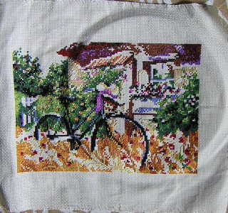 クロスステッチ:bicycle afternoon (DIMENSIONS) 今日は晴れたし、青を追加しよう