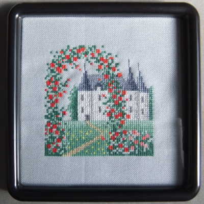 2011年開始となるのは、オリンパスししゅうキット 「バラのアーチの城」という小さな小さなクロスステッチ。近所にある、とあるNPOのショップに持ち込まれた、手つかずのキットを格安に手に入れたもの。